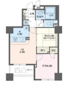 ドゥーエ横浜駅前の1Kタイプの間取りは、単身の方に最適なコンパクトで機能的な設計が魅力です。