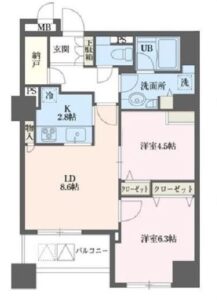 ドゥーエ横浜駅前の2LDKタイプの間取りは、ご夫婦やファミリーにぴったりのゆとりある住空間が特徴です。