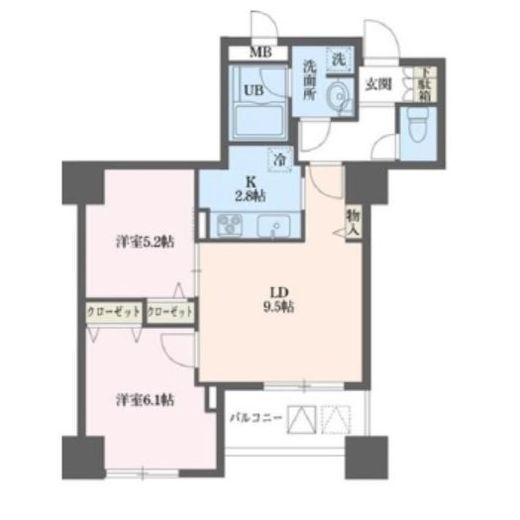各洋室は充分な広さが確保され、プライベート空間として十分な独立性を持っています。どちらの洋室にもクローゼットが設置されており、衣類や荷物を整理するのに便利です。