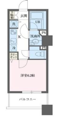 ドゥーエ横浜駅前の1Kタイプの間取りは、単身の方に最適なコンパクトで機能的な設計が魅力です。